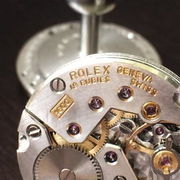 Diese Manschettenknöpfe setzen ein ganz besonderes Handaufzugwerk der Genfer Manufaktur Rolex in Szene, das gerade seinen 55. Geburtstag feiert. Es handet sich um ein extraflaches Kaliber mit der Werkenummer 1600. Es hat 19 Rubine und ist äußerst aufwändig verziert. So sind alle Schriftzüge in gravierter Goldschrift gehalten. Die Hauptplatine auf der Rückseite trägt zudem einen feinen, so genannten “Genfer Sonnenschliff”. Das runde Kaliber wurde ab dem Jahr 1964 produziert und kam in der Rolex-Uhrenlinie “Cellini” zum Einsatz. Die brillant leuchtenden Rubinlager geben den Werkbrücken eine besondere Note.