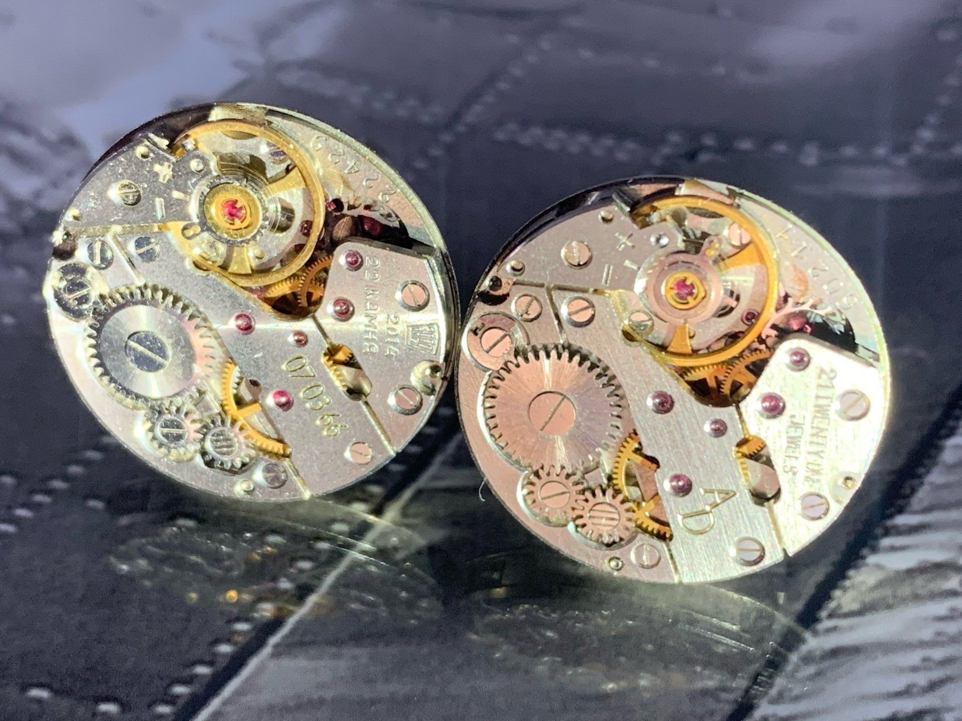 Manschettenknöpfe mit Ihrer persönlichen Gravur. Hergestellt aus einem historischem Kaliber Zarja 2009B in cooler Machine Brushed Optik.