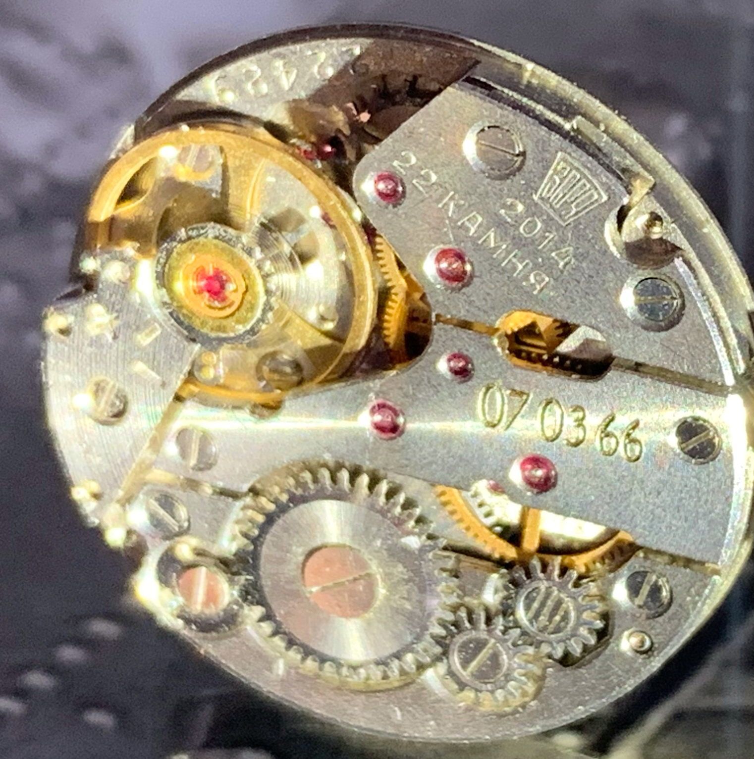 Das Uhrwerk stammt aus dem Jahr 1969 und wurde von der Penza Uhrenmanufaktur hergestellt. Seine Wurzeln reichen jedoch noch viel weiter zurück. Denn es ist weitgehend baugleich mit verschiedenen Kalibern von Enicar und Durowe aus den 1940er-Jahren.
