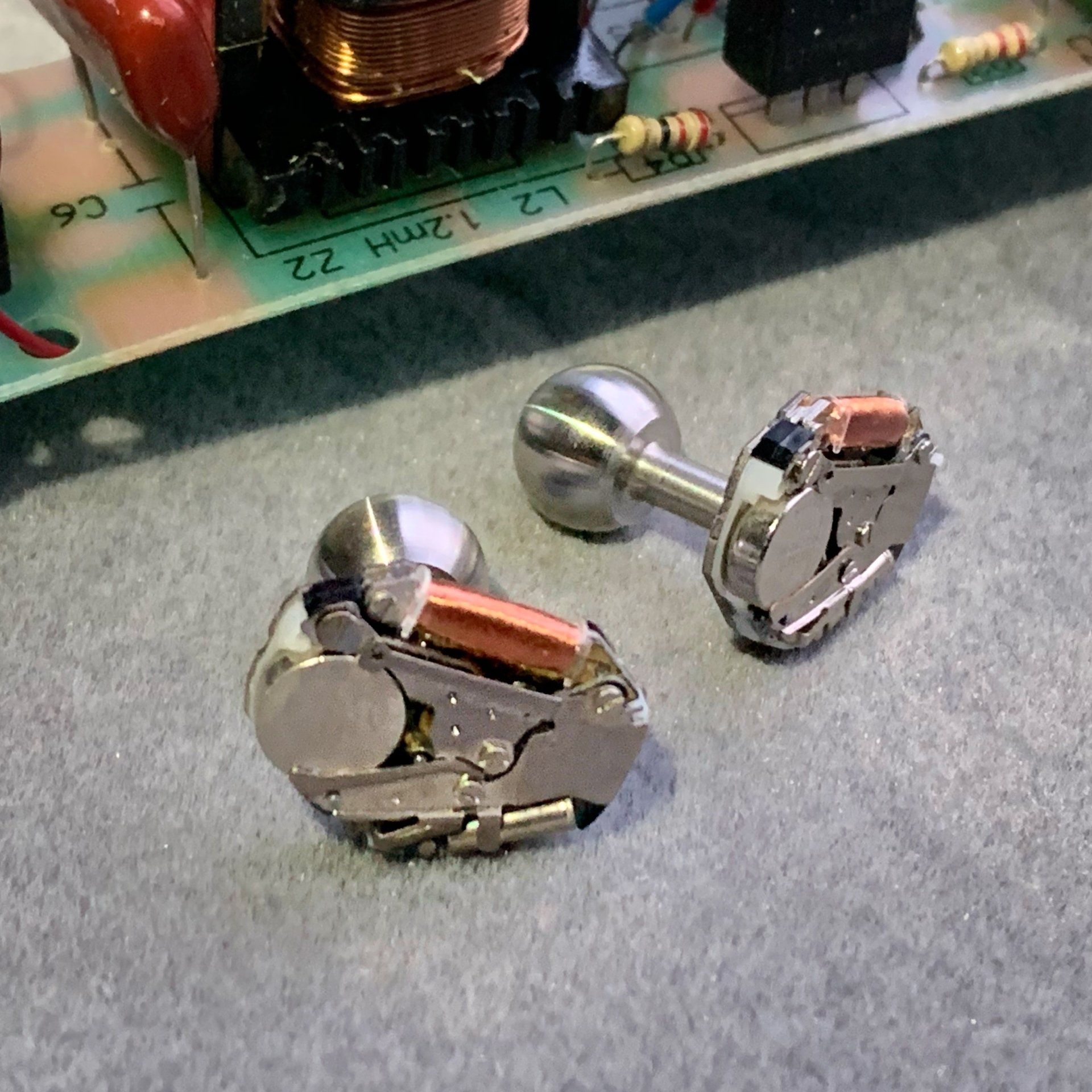 Das etwas andere Uhrwerk als Manschettenknopf: Hightech statt Feinmechanik, Elektronik statt Federhaus und Zahnräder. Unser Modell TOKYO präsentiert ein japanisches Miyota-Quarzuhrwerk incl. Modell einer Knopfzellenbatterie (auslaufsicher). Auffällig ist die leuchtendrote Kupferspule an der Längsseite dieses zierlichen Manschettenknopfs. Wer ein Faible für Elektronik, Mikrochips oder Quarzuhren hat, setzt mit diesem Modell ein auffälliges Zeichen am Arm. Und ein Talking Piece für das Gespräch bei Tisch. Denn es waren Uhrwerke wie dieses, die einst die feine Schweizer Uhrenindustrie an den Rand des Ruins brachten. Heute führen Quarzuhren und mechanische Uhren nebeneinander ein gleichberechtigtes Dasein.