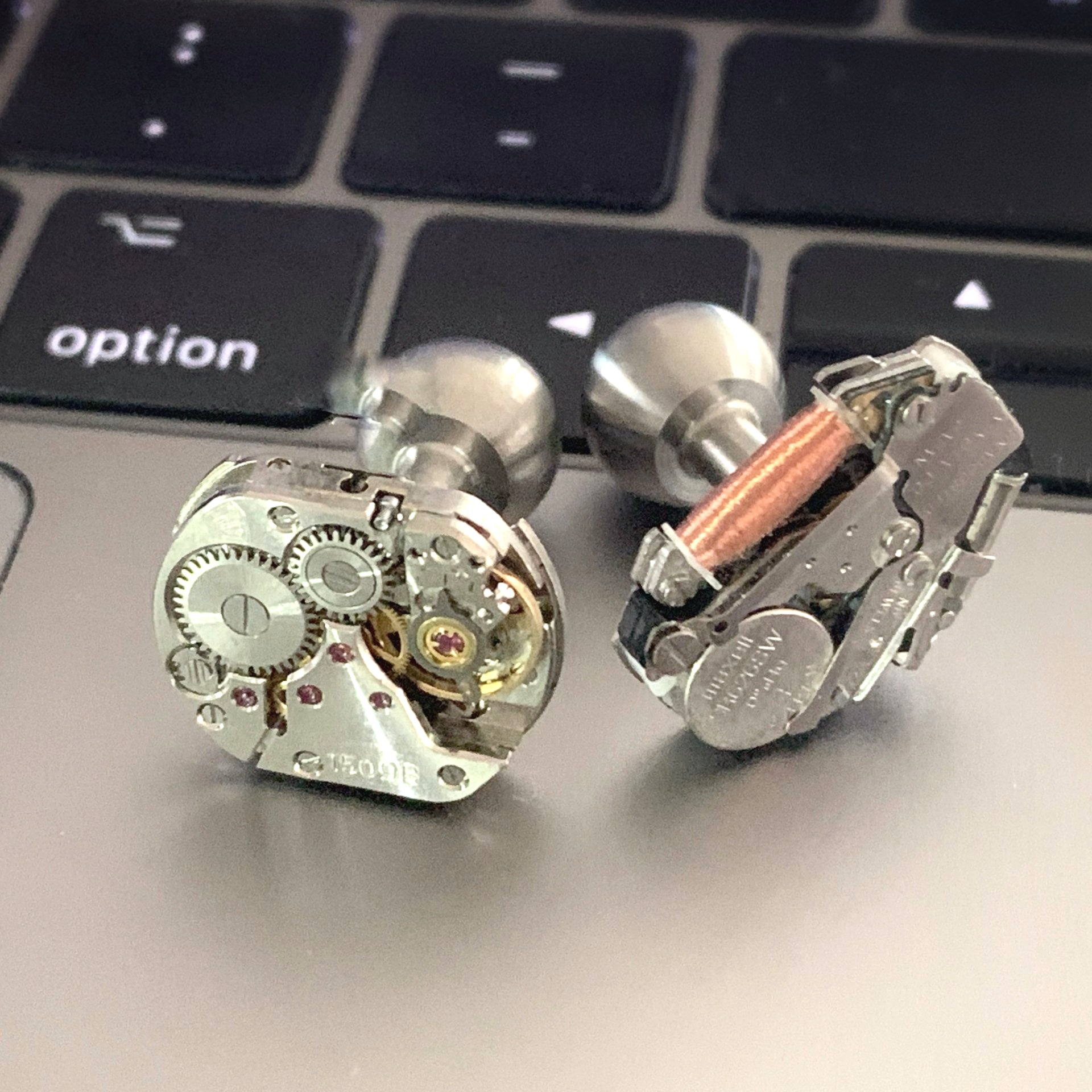 Das etwas andere Uhrwerk als Manschettenknopf: Hightech statt Feinmechanik, Elektronik statt Federhaus und Zahnräder. Unser Modell TOKYO präsentiert ein japanisches Miyota-Quarzuhrwerk incl. Modell einer Knopfzellenbatterie (auslaufsicher). Auffällig ist die leuchtendrote Kupferspule an der Längsseite dieses zierlichen Manschettenknopfs. Wer ein Faible für Elektronik, Mikrochips oder Quarzuhren hat, setzt mit diesem Modell ein auffälliges Zeichen am Arm. Und ein Talking Piece für das Gespräch bei Tisch. Denn es waren Uhrwerke wie dieses, die einst die feine Schweizer Uhrenindustrie an den Rand des Ruins brachten. Heute führen Quarzuhren und mechanische Uhren nebeneinander ein gleichberechtigtes Dasein.